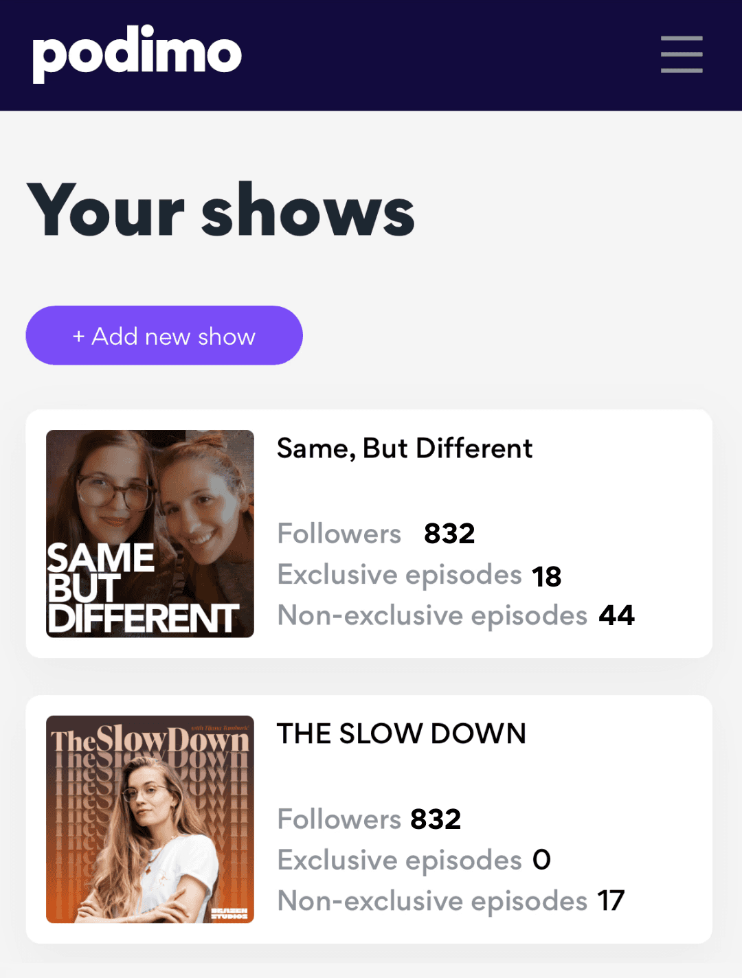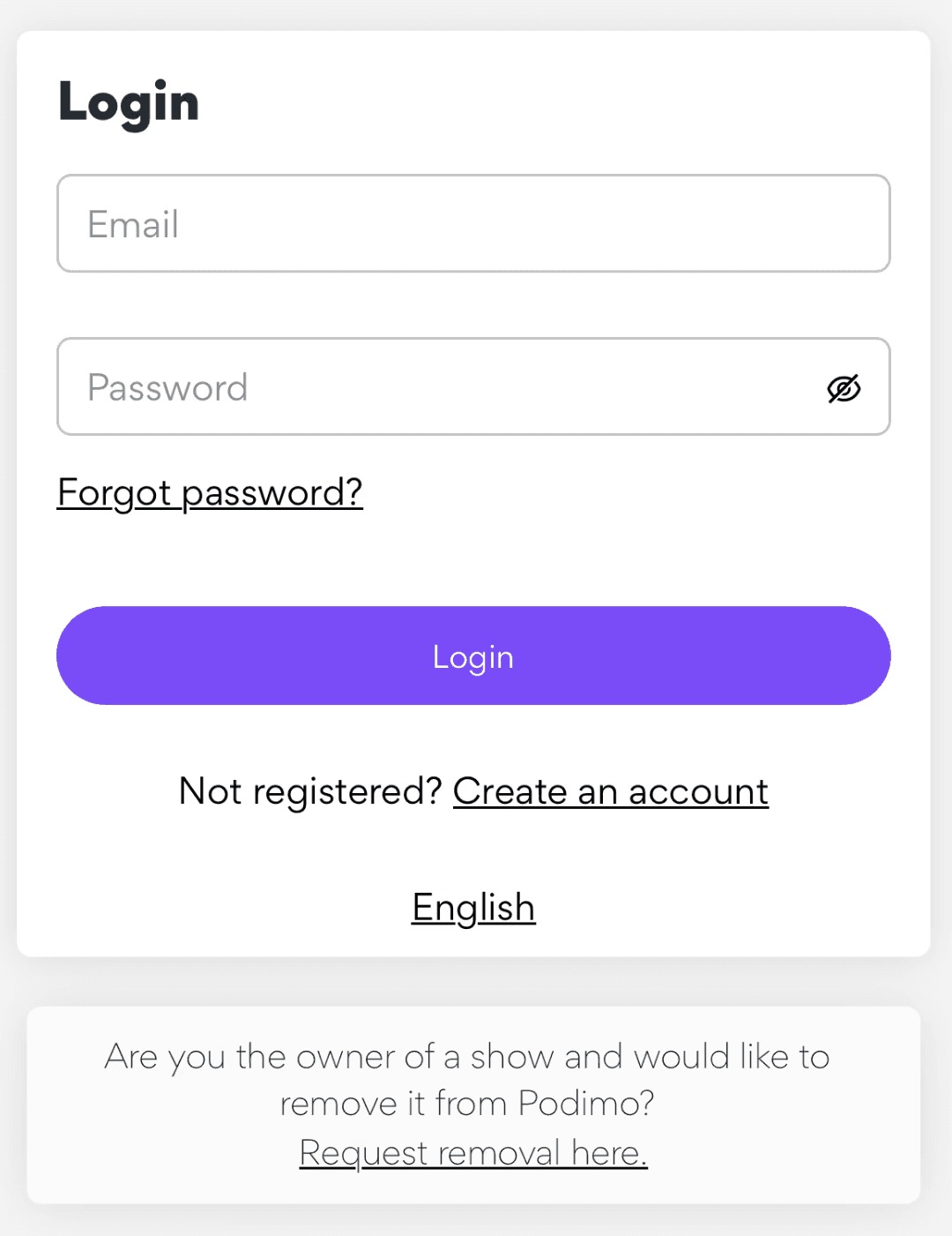 Hvis du allerede har en podcast, der ikke er eksklusiv på én platform, kan du tilføje den på Podimo og blive en del af Podimos indtjeningsprogram. Dette giver dig en fast CPM (betaling pr. 1000 streams) fra betalende Podimo-lyttere. Du behøver ikke at ændre noget ved, hvordan din podcast er hostet eller distribueret. Din indtjening starter, så snart du har registreret ejerskabet af din podcast i vores Podcaster Studio.
