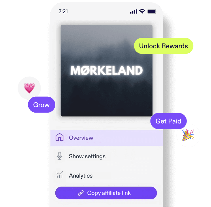 Turn your listeners into rewards! With your personal affiliate link, you can earn money, unlock creative tools, and build stronger connections with your fans. Every new listener you bring to Podimo gets you closer to the next reward!